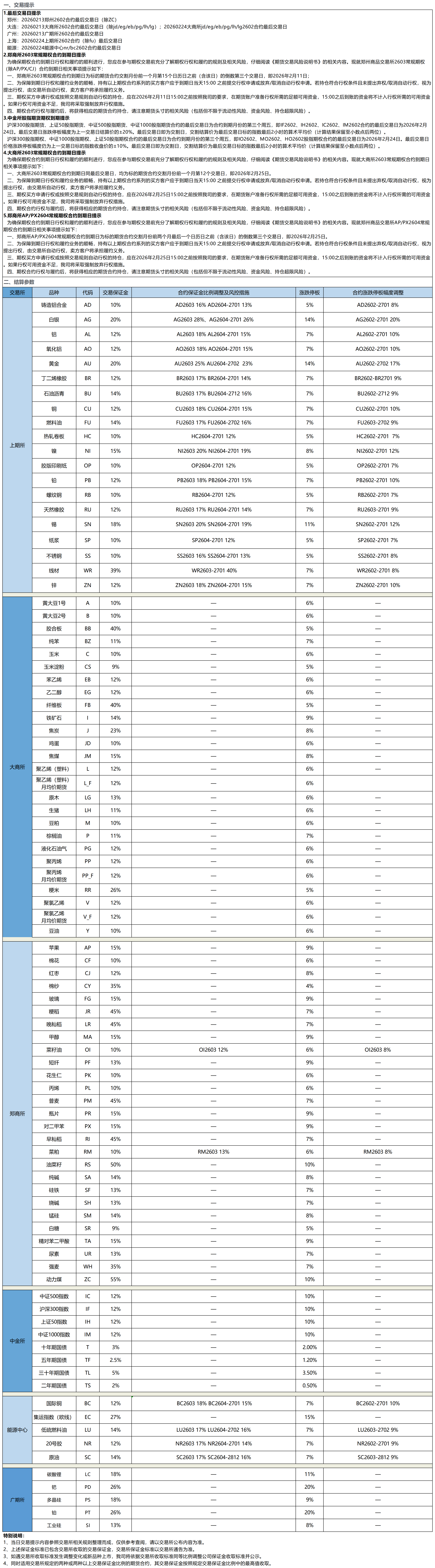 各品种交割信息